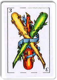 Indica una cerimonia rinviata o annullata. Quasi sempre indica un ritorno : di una persona cara, di un parente, di un amico, di un fidanzato , di un coniuge. Se seguita da carte di coppe dritta indica un ritorno d'amore e la carta successiva offre un indicazione dei tempi del ritorno. Seguita da carte di spade indica un ritorno bloccatoi che non ci sarà, in particolare se seguito dal tre di spade rovesciato indica che non ci sarà ritorno. Inutile sperare.