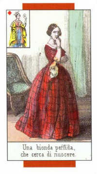 Una donna chiara di capelli, bionda o brizzolata, sta cercando di nuocervi : è gelosa, cattiva, perfida. Non conosce freno alla sua malizia. Trama alle vostre spalle e cercherà in tutti i modi di nuocervi. E' una donna che qualunque cosa abbia a che fare con voi non smetterà così facilmente di farvi, o tentare di farvi, del male . Guardatevi bene dal confidare in lei e farle confidenze : le userebbe contro di voi. E' una donna senza scrupoli che ha come unico scopo quello di farvi del male : sappiate che è pronta a tutto anche se si presenta sempre gentilmente e in modo affabile. Cerca solo di carpire la vostra fiducia.